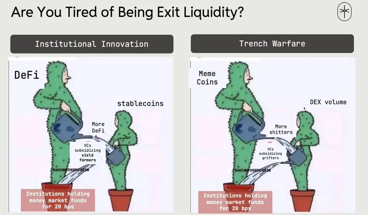 那些在无数会议上为「采用」欢呼的「机构创新者」和在推特上狂聊 Memecoin 的战壕战士,其实比你想的更像一类人。我们该停止舔了,开始动脑子。