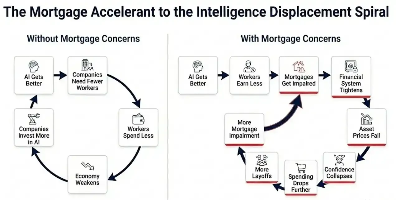 从更深层看,整个经济体系,本质上是一条对白领生产率持续提升的高度相关押注链条。2027 年 11 月的市场崩盘,并非冲击的起点,而只是将早已存在的各类负反馈机制全面加速。