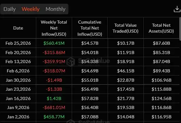 SoSo Value 数据显示,机构投资者已连续五周削减比特币 ETF 敞口,现货比特币 ETF 总流出规模约达 45 亿美元。