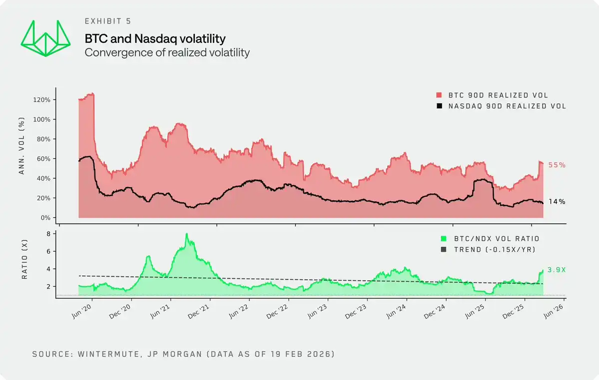 随着波动率的压缩,加密货币吸引散户的核心卖点也随之消退。那种定义了 21 到 22 年牛市周期、吸引了一整代散户进场的暴涨暴跌,如今已经一去不复返。对于追求波动的散户来说,美股正变得越来越有吸引力。