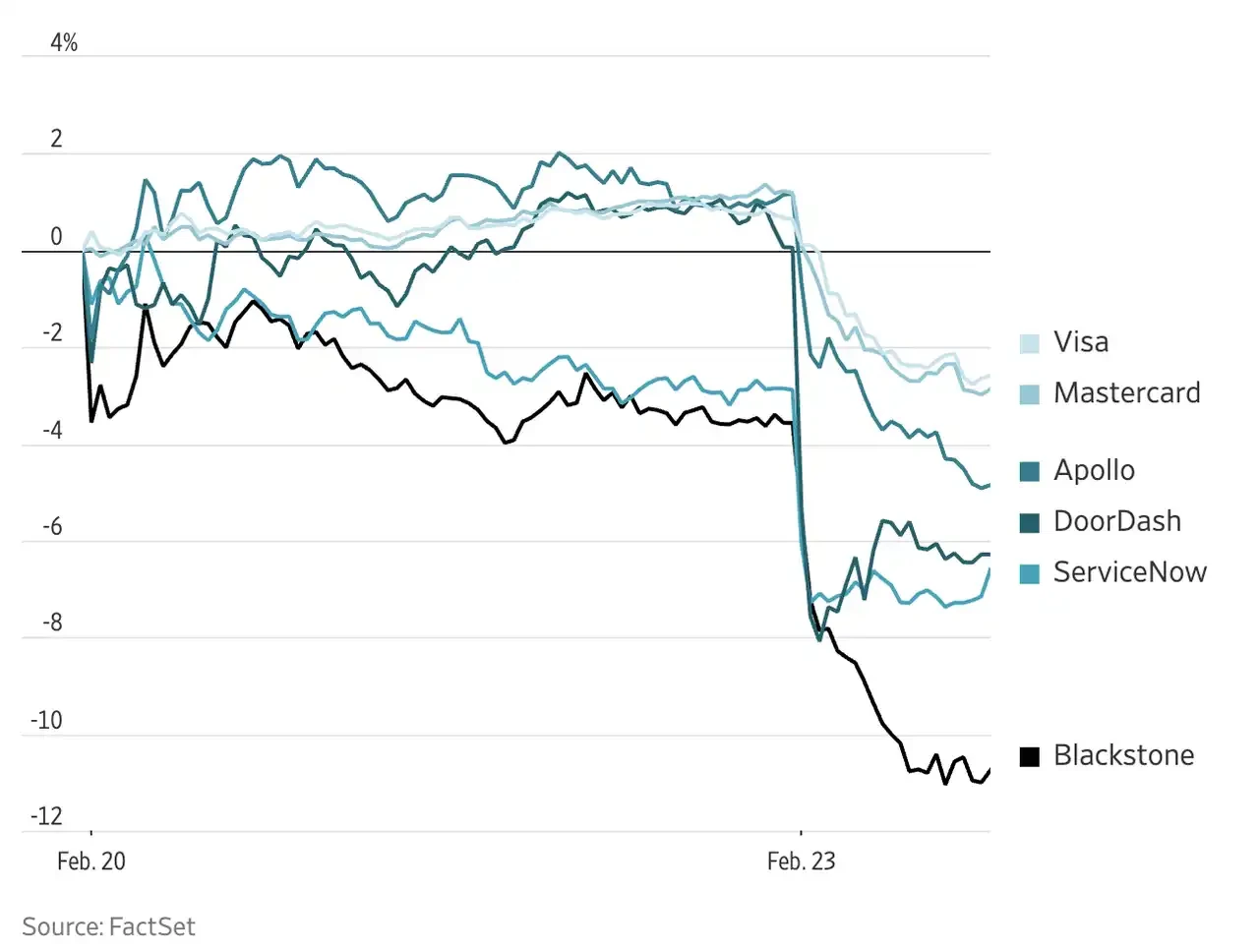 2026 年 2 月 22 日,一篇名为《The 2028 Global Intelligence Crisis》的报告,引爆了社交媒体和金融市场,浏览量突破 2700 万。报告发布当日,IBM 重挫 13%,DoorDash、American Express、KKR 等一众公司股价纷纷下跌 6% 以上。