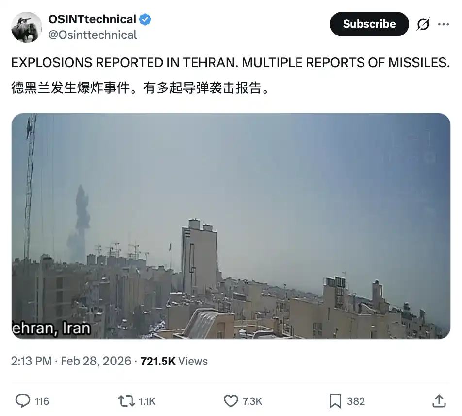 1 点 13 分,推特上出现第一条关于空袭的开源情报。