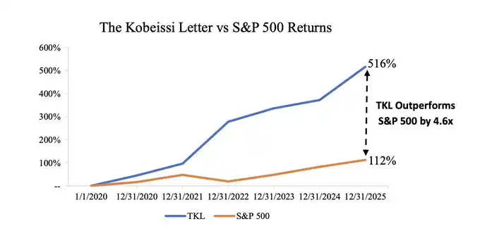 正是这种客观且系统化的投资方法,让我们的策略持续跑赢市场基准。如下所示,自 2020 年以来,我们的投资策略累计回报已经接近 标普 500 指数的五倍。