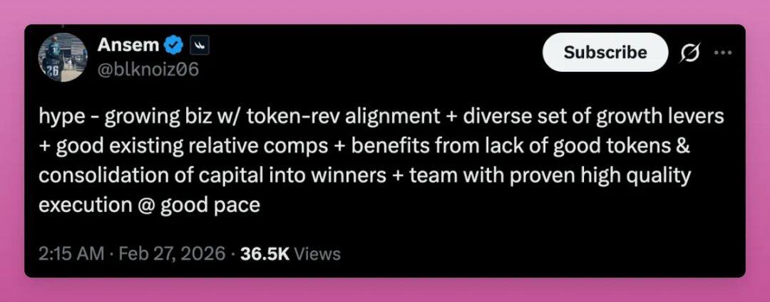 Ansem 的推文很好地总结了 HYPE 的投资理念: