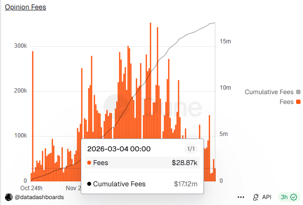 Opinion 手续费累计收入超 1700 万美元