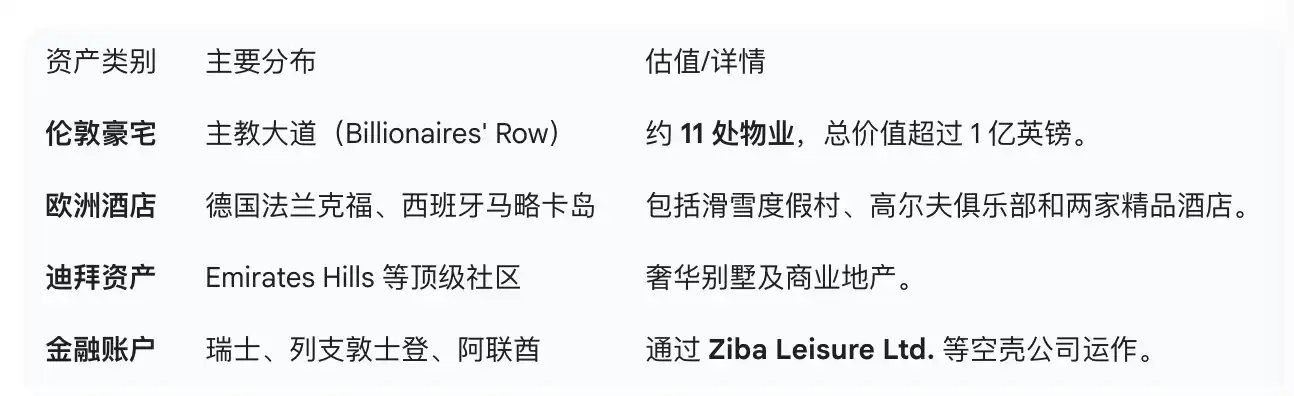 顺着复杂的公司网络,安萨里集团在海外布局了庞大的房地产商业帝国。彭博社追踪到该网络仅在伦敦就拥有十几处房产,并在德国金融中心法兰克福和西班牙等地拥有多家五星级酒店。