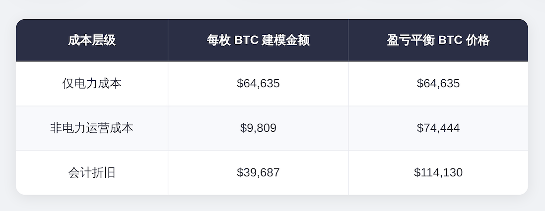 这清楚地表明,对大型美国矿商而言,"挖一枚 BTC 的成本"并没有单一数字。
