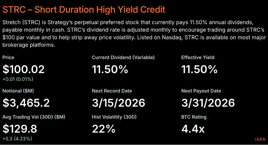 Strategy 的 STRC 提供年化 11.5% 的股息,可按月现金支付,可在大多数主流券商平台交易。Strategy 的基础在于比特币的 CAGR。其假设是 BTC 是抗通胀资产,并认为实际通胀率约为 8%。STRF 及其他类似优先股产品如 STRD 和 STRK 将抗通胀部分的收益带给投资者。投资者还可选择 8% 收益的 STRK,有机会转换为 MSTR 以捕获更多比特币上涨空间。