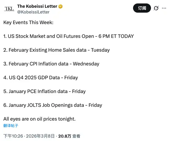 想清楚短期怎么交易,就看今晚油价开盘、周三 CPI、周五 PCE 这几个数据。这个这些数据齐齐指向通胀顽固、降息无望,2022 年的剧本是最近的参照,比特币大概率先承压。