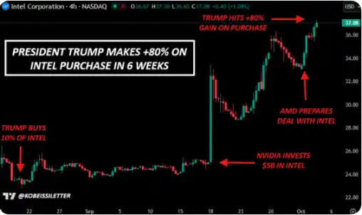 第二步为战略姿态与实力展示,包括军事部署、公开盟友协调等可见准备动作,目的是在不触发全面冲突的前提下强化可信度。该机构以 2025 年 8 月特朗普与英特尔 CEO Lip-Bu Tan 的会面为例——此前特朗普公开要求其「立即辞职」,随后双方达成政府入股 10% 的协议,该投资在不到两个月内录得逾 80% 的账面收益。
