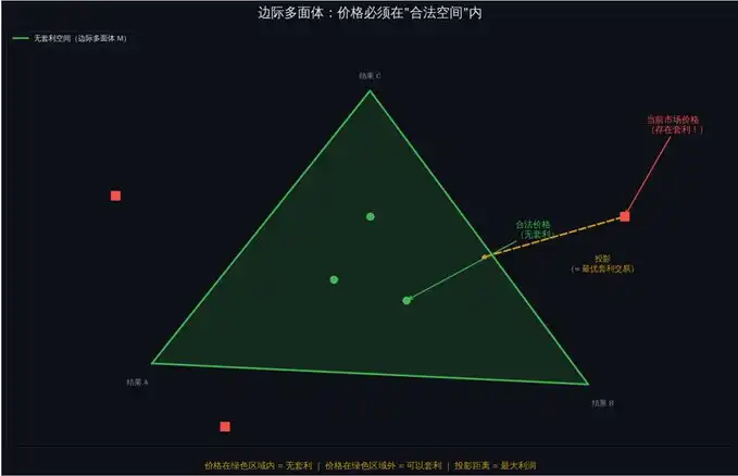 • 边际多面体(Marginal Polytope)→ 所有「合法价格」组成的空间。价格必须在这个空间内才是无套利的。可以理解为「价格的合法区域」
