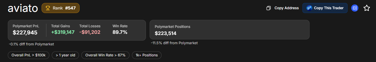 Michael B. Jordan 持仓 YES 第一地址:0x4cc25002e1b5d09c1dab0d26dbe2333648829271,该地址胜率仅为 48%,历史盈亏为负 20 万美元。