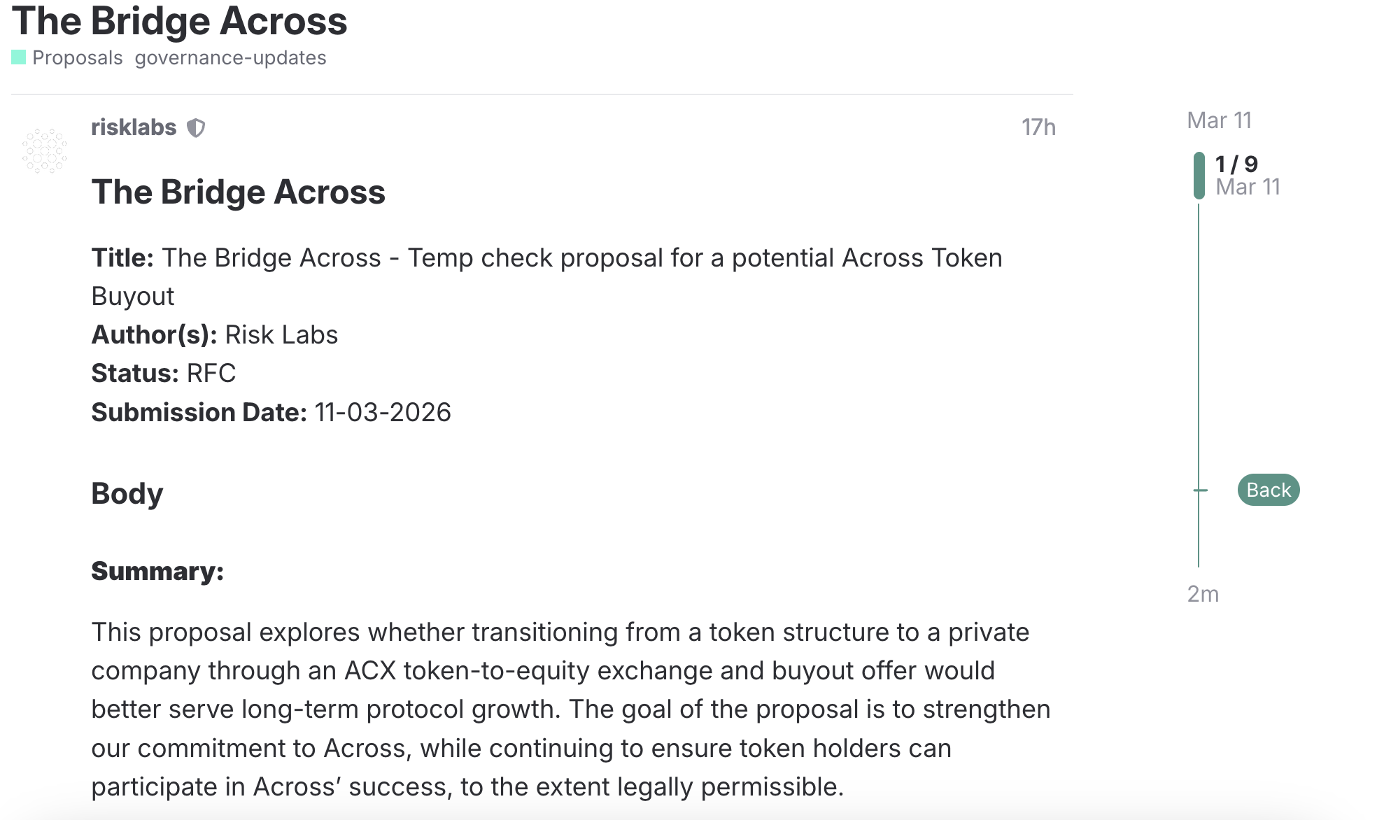 3月11日,Across发布温度检测提案,计划从DAO结构转型为美国C型公司。这是Across协议在治理结构上的重要转变,在加密领域尚属首例。