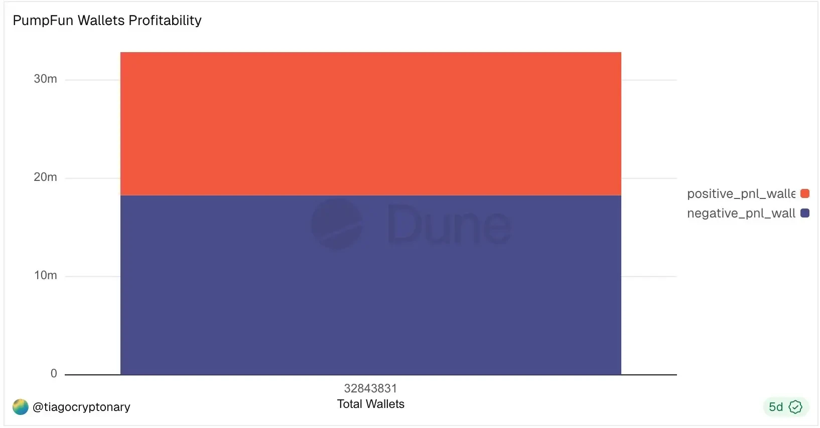 Pump在2024年1月上线时,Solana的原生代币SOL的交易价格约为84美元。根据Dune Analytics的数据,在Pump.fun的大约3280万个钱包地址中,只有大约13.9万个(约0.4%)实现过超过1万美元的利润。大约55%的交易者纯粹在亏钱,而超过90%的人要么亏损,要么赚了不到1000美元。在2025年,Solidus Labs的研究将该平台上98%的代币标记为骗局或表现出欺诈活动。