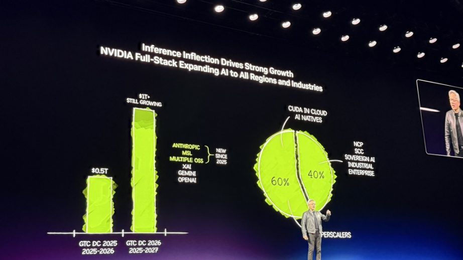 目前,英伟达 60% 的业务来自排名前五的超大型云服务商,而另外 40% 的业务则广泛分布于主权云、企业、工业、机器人和边缘计算等各个领域。