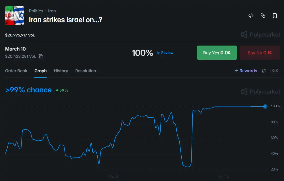 Fabian 最终没有妥协。但他也坦言,这一次的坚持,并不能保证未来不会发生类似情况。涉事平台 Polymarket 已下架所有原本每日更新的「伊朗是否会在某月某日打击以色列」交易市场,并回应称「封禁涉事账户,移交信息」。