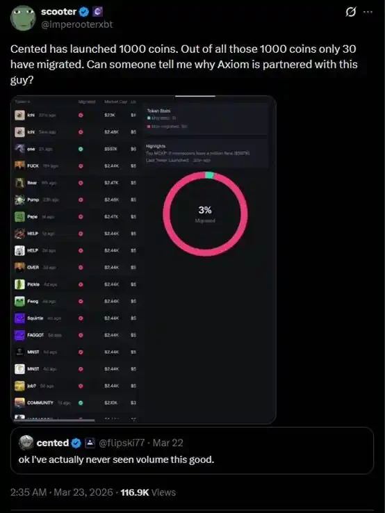 所以,开始有许多声音,认为 Cented 这样的玩家,已经成为「meme 币的癌症」。