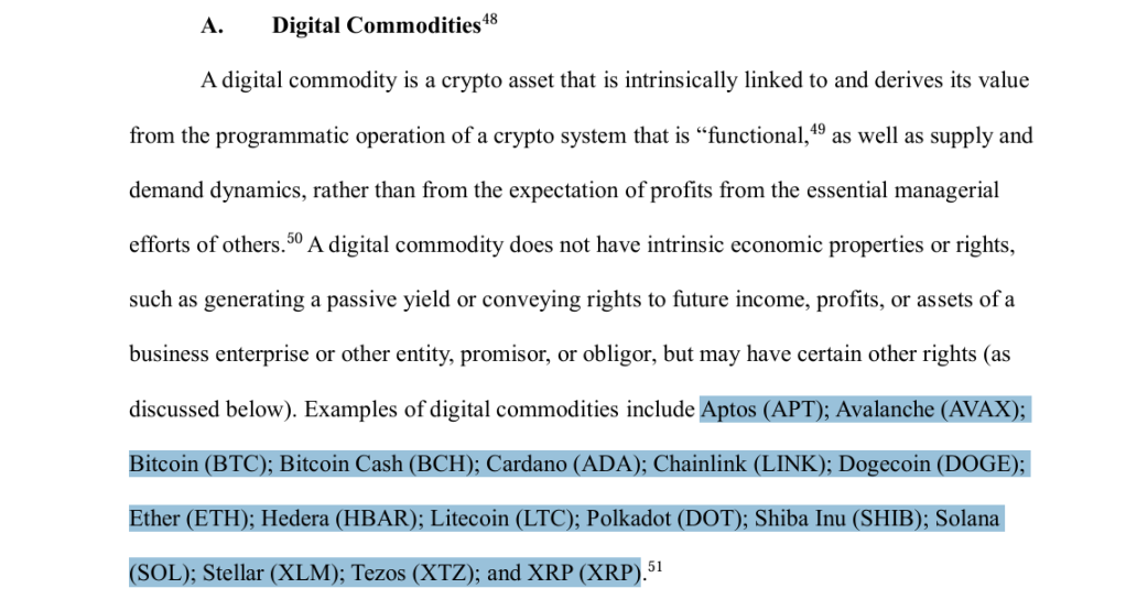 结合 SEC 与 CFTC 明确将 Bitcoin、Ethereum、Solana 及另外 13 种主流代币定义为「数字商品」,代表这些资产将主要受 CFTC 监管,而非遵循证券法,这也标志着 CFTC 和 SEC 的监管范围首次实现清晰划分,「Token 是否是证券」不再停留于模糊的灰色地带。