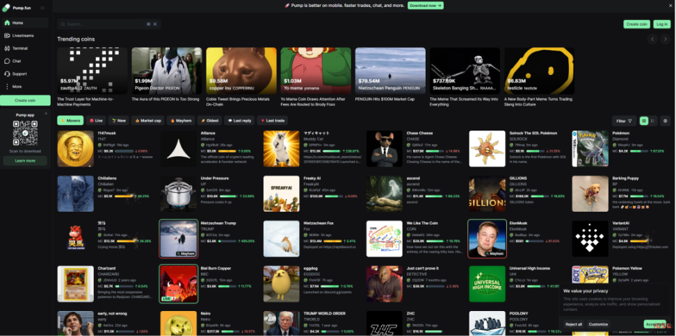 Pump.fun 于 2024 年初作为 Solana 上的无许可 Meme Launchpad 上线,允许任何人通过 Bonding Curve 机制在几秒内创建和交易代币。项目起初是小众实验,但很快成为公共区块链上收入最高的应用之一。