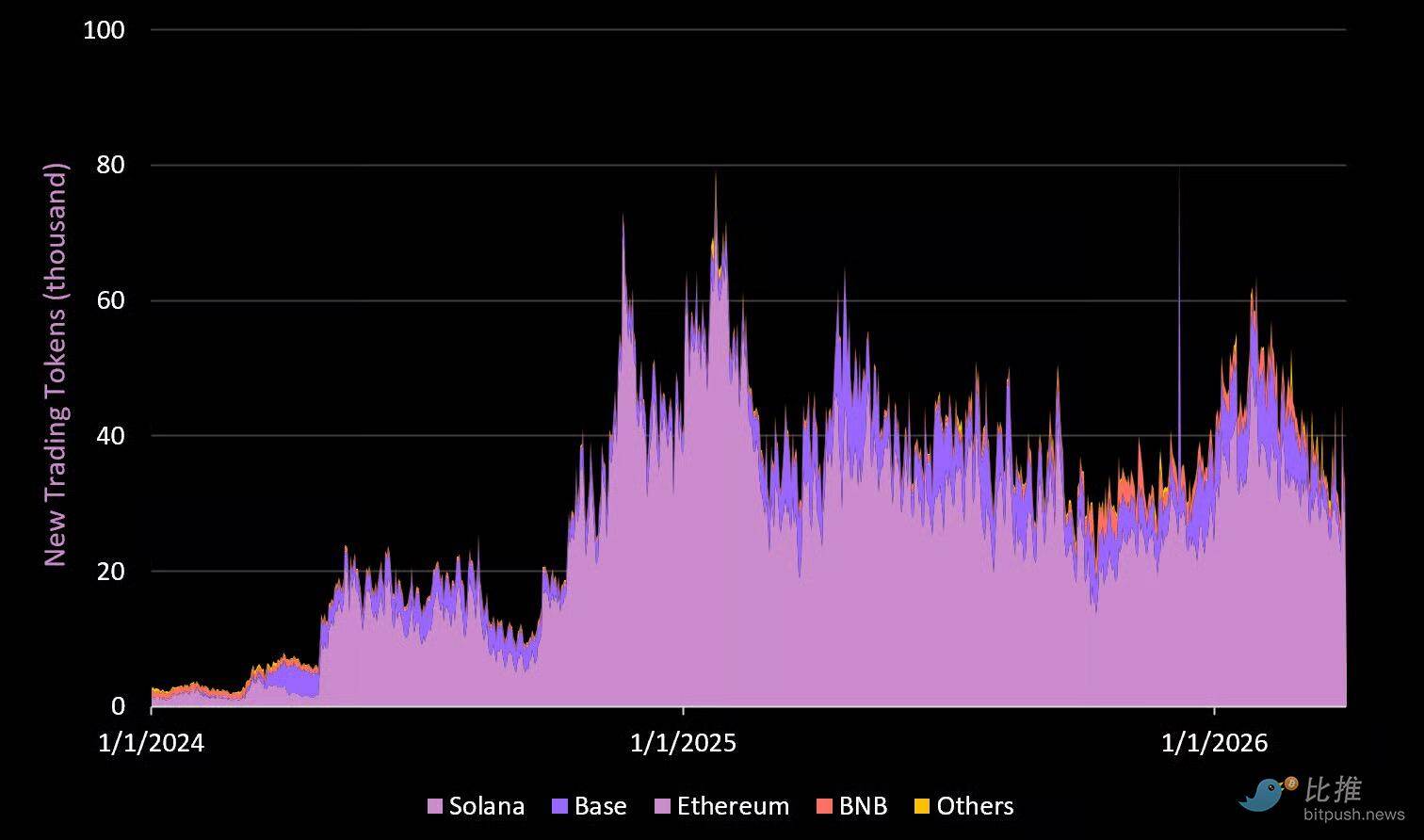 - 新交易代币数量目前较 2025 年初的峰值下降了 53%。