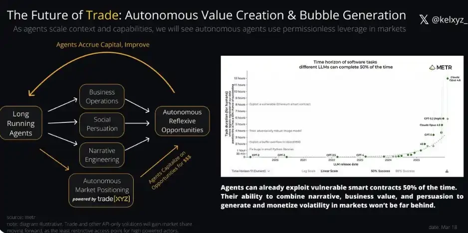 当「推理能力」与「任务持续时间」叠加,便会出现一类更智能、执行能力更强的代理(agents)——它们的「生命周期」足够长,可以在市场波动中捕捉、生成,甚至主动制造机会。