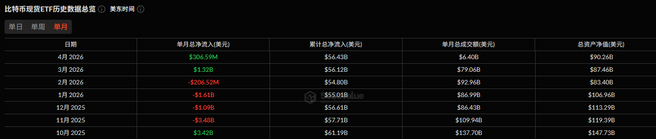 比特币 ETF 资金回暖:三月止跌,四月继续净流入