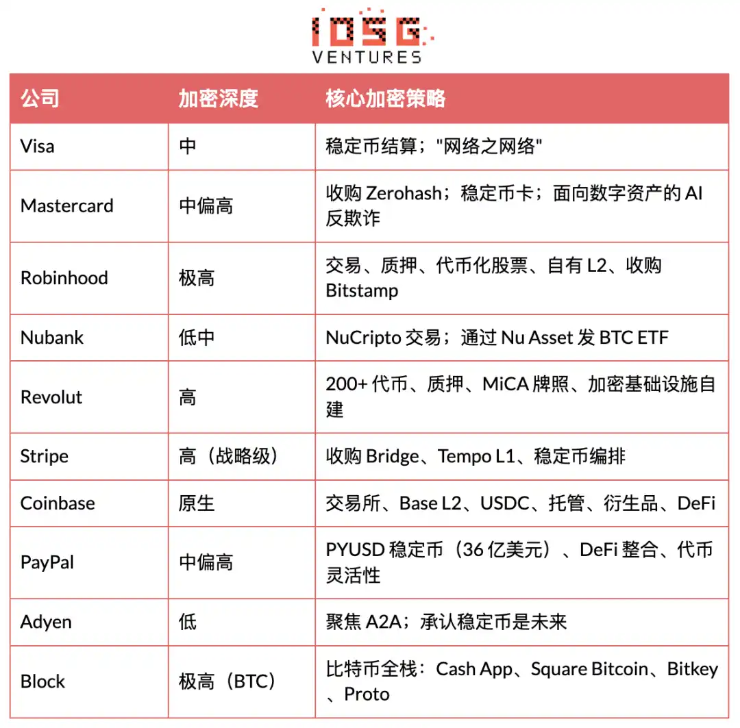 基础设施玩家(Visa、Mastercard、Stripe、Adyen)