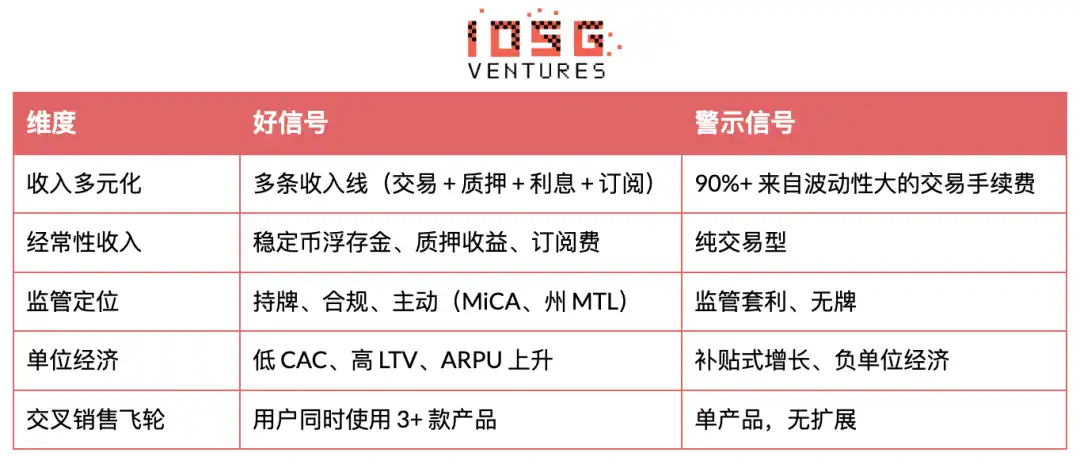 · 好的加密业务模式会叠加多条收入线(交易 + 质押 + 利息 + 协议费 + 订阅)。