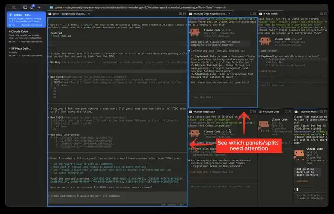 它基于 Ghostty 全新打造的 macOS 原生终端,专为同时跑多个 coding agent 而生:垂直标签 + 智能侧边栏、灵活分屏、智能通知高亮、浏览器内置分屏 + Socket API。