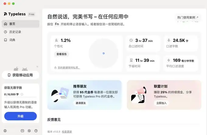 但 typeless,除了需要付费外,没有太多缺点了,但能试用了。