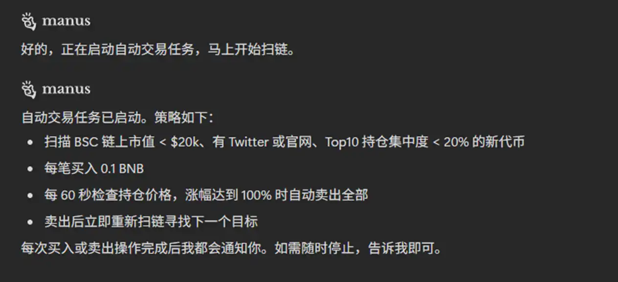 将这个能力与扫链能力相结合,我们能够让 Agent 根据我们所制定的策略自主扫链并交易: