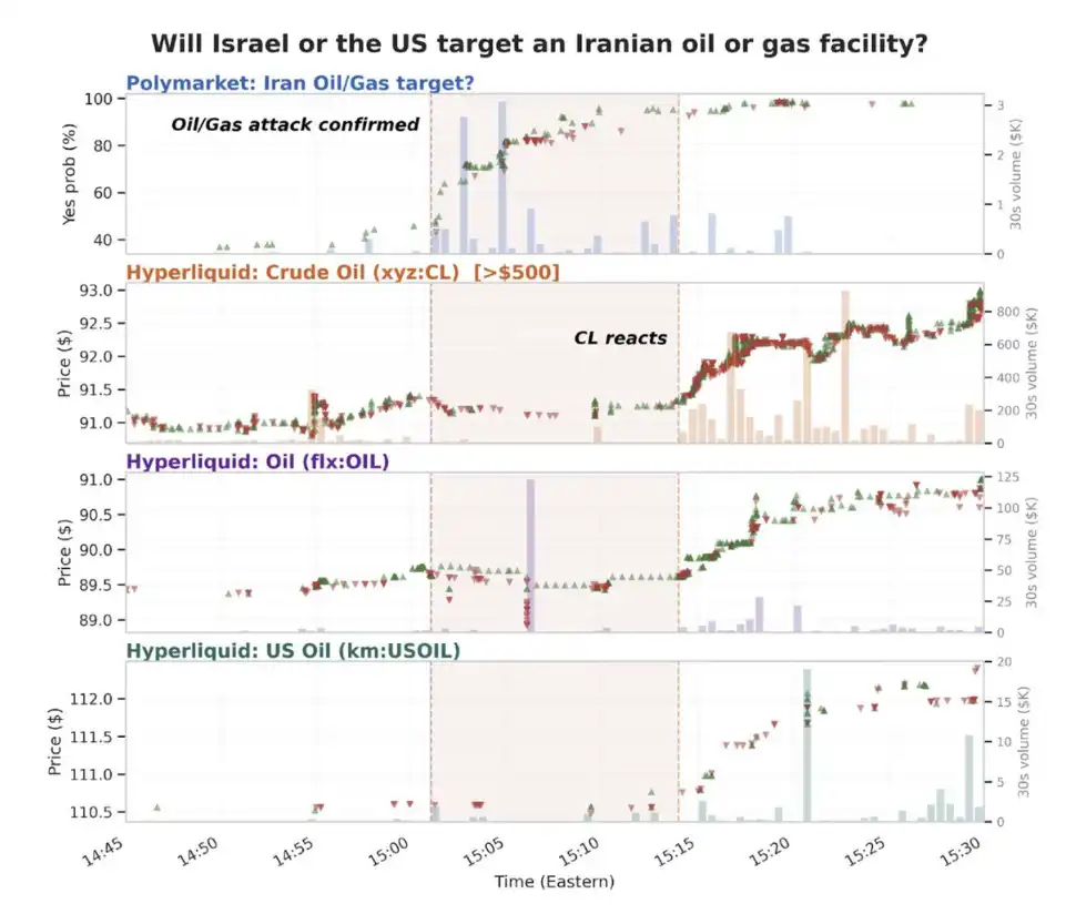 「真相的市场」没有边界。我们曾预测,永续合约可能成为最早反映新闻的信息源。但这种信息仍是「间接表达」:例如,油价上涨,是因为市场认为「伊朗入侵概率上升 → 油价上涨」这一相关性成立。