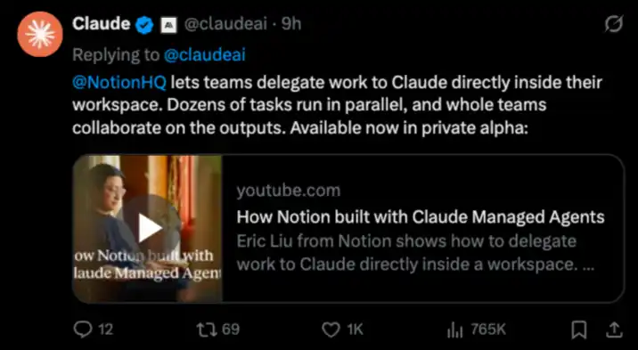 Notion 就是这么干的:用户在 Notion 里把任务分配给 Claude 智能体,智能体在后台干完活把结果交回来,用户全程不需要离开 Notion。