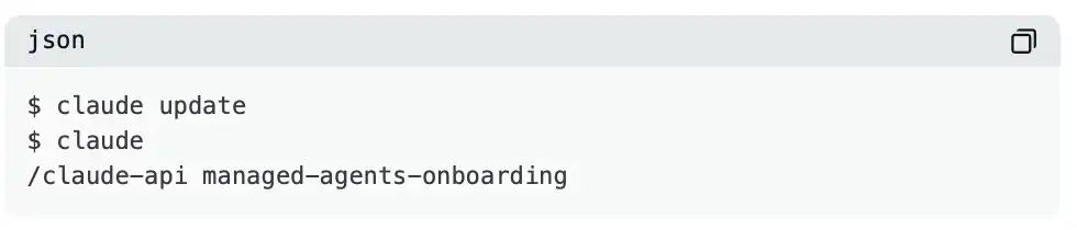 一个简单的入门方式,是使用我们开源的 claude-api skill,它可以在 Claude Code 中开箱即用。你只需安装最新版 Claude Code,然后运行以下子命令,即可完成 Claude Managed Agents 的初始化配置。