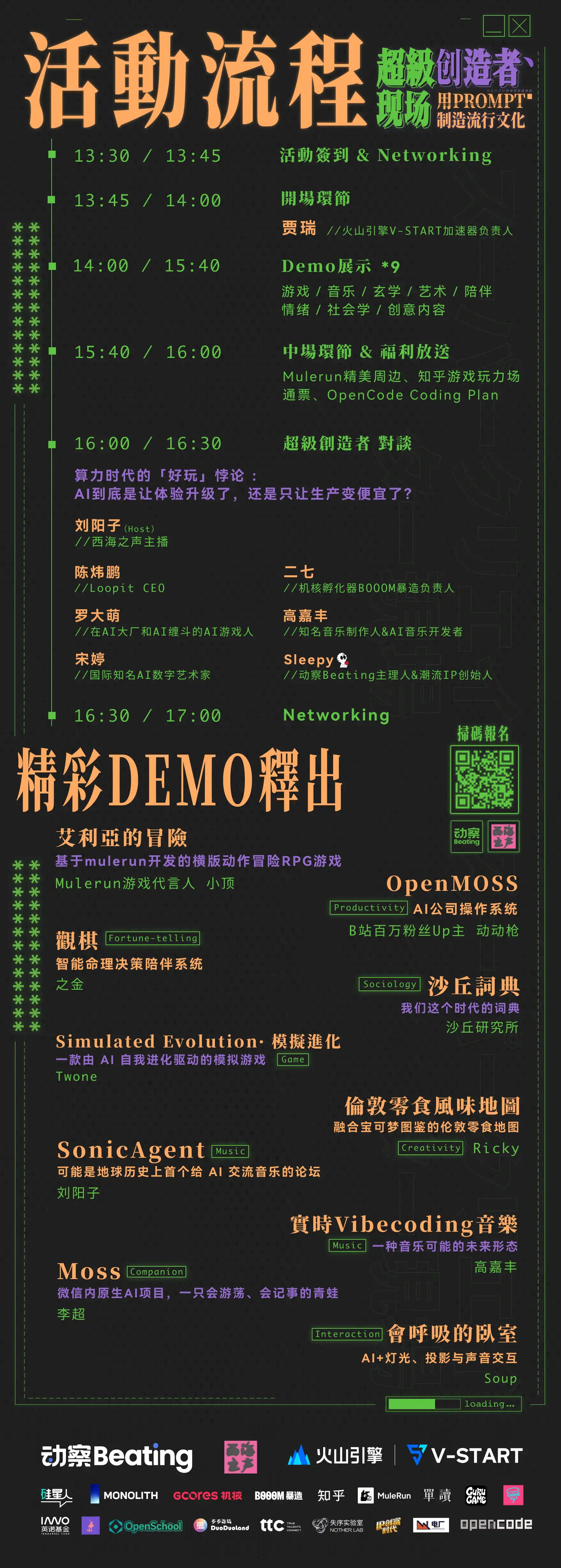 由动察Beating、西海之声联合主办的活动「超级创造者现场——用 Prompt 创造流行文化」在周六就要和大家见面了。