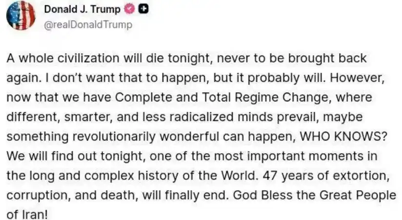 2026 年 4 月 8 日凌晨,全球金融市场屏息以待。距离特朗普为伊朗设定的「最后期限」——美国东部时间 4 月 7 日 20:00——仅剩不到一个半小时,一条来自特朗普本人社交媒体的消息引爆了市场:「我同意暂停对伊朗的轰炸和袭击行动,为期两周。」