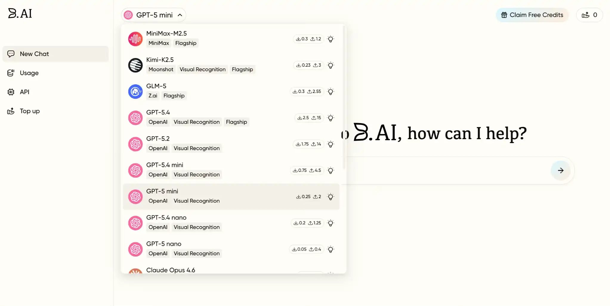 目前,B.AI 已支持包括 ChatGPT、Claude、Gemini 等全球顶尖 AI 大模型,以及 MiniMax、Kimi、GLM 等国内性价比优异的模型,用户可在单一页面对话不同模型。在 API 调用方面,则提供统一的 API Key 服务接口,用户只需创建一个 B.AI API Key,即可一站式调用所有集成模型的 API,省去向不同服务商重复申请、管理多套 API 的繁琐流程。