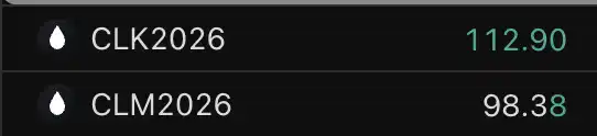而这次 Trade.xyz 原油展期时,原油期货市场就是这种近高远低的结构。