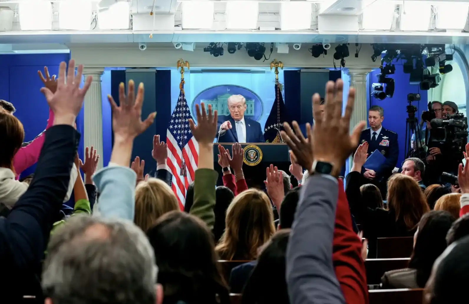 在特朗普宣布停火后的数小时内,白宫新闻秘书 Karoline Leavitt 呼吁外界谨慎看待有关面对面会谈的报道,称任何实质性进展都必须以总统正式宣布为准。