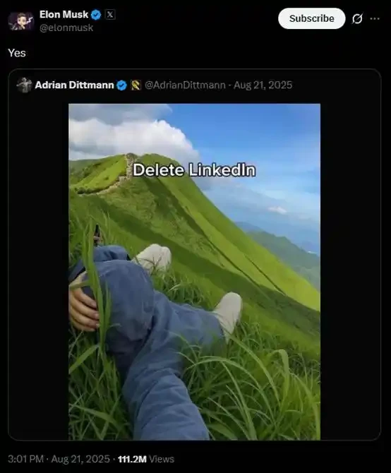 从创作者的角度来看,Neet 官推所创作的推文爆款频频,甚至被引用后得到了马斯克的转发与肯定: