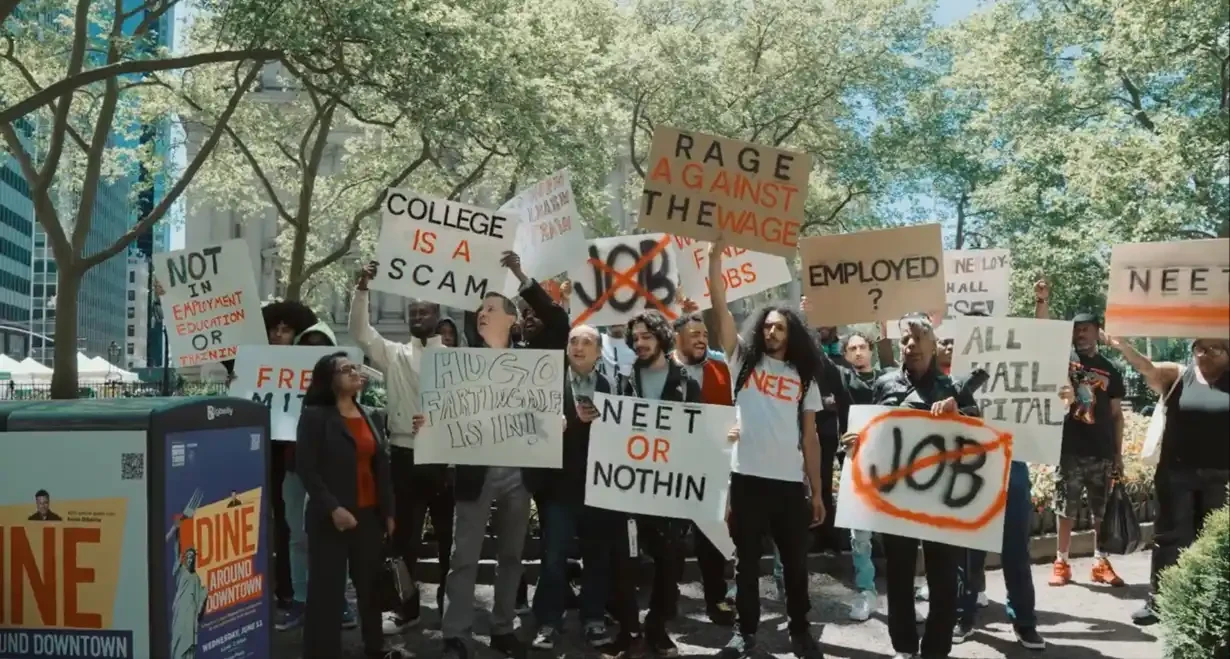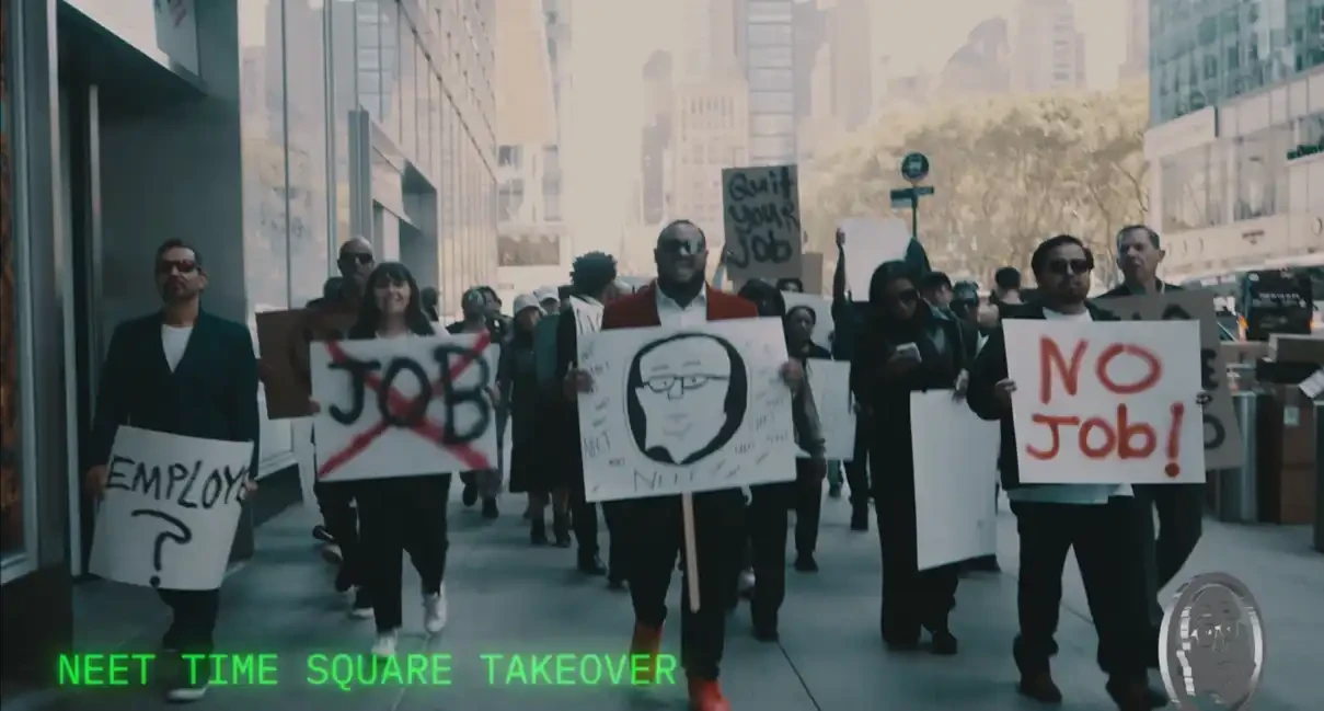 2025 年 5 月 20 日,$neet 背后的创作者用 pump.fun 给予的创作者激励在华尔街举办了一场线下的「不工作」抗议活动: