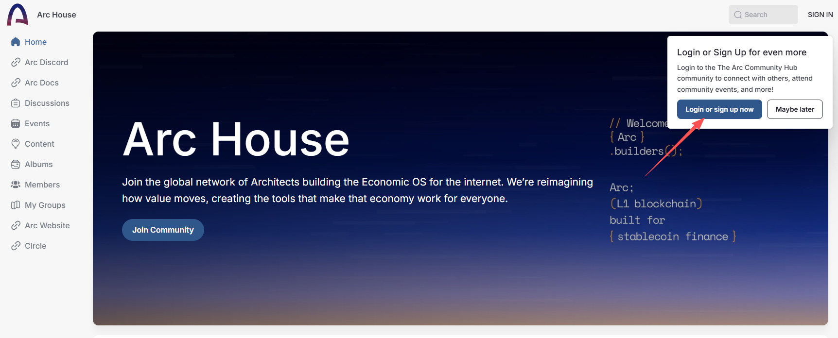 STEP 1. 进入交互网站(链接:https://community.arc.network/),通过谷歌邮箱进行账号注册,完成验证即可登录。