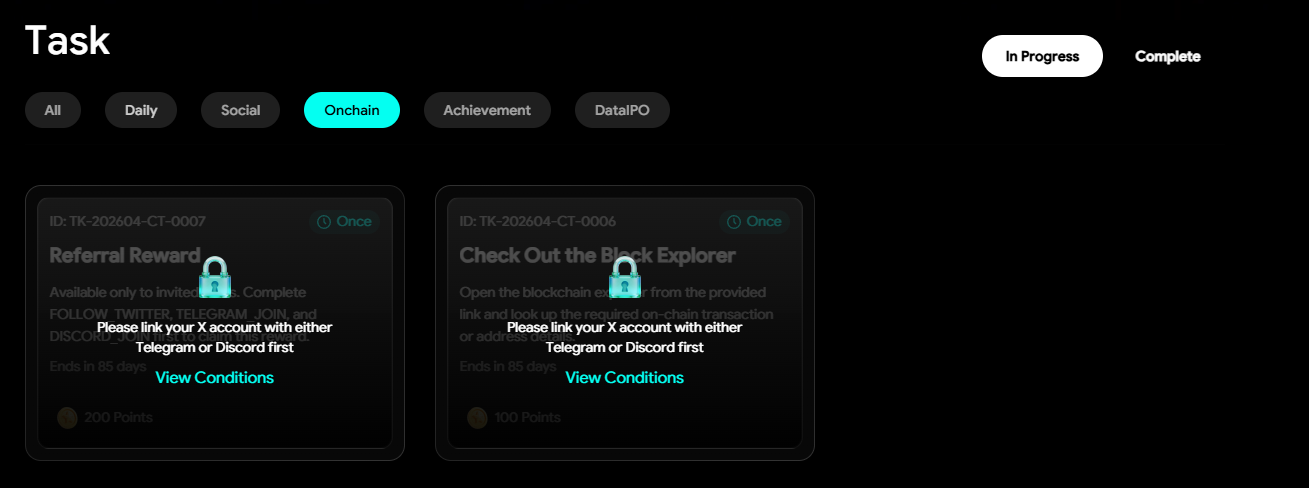 STEP 4. 完成链上任务(也需先绑定个人社交账号才可解锁)。