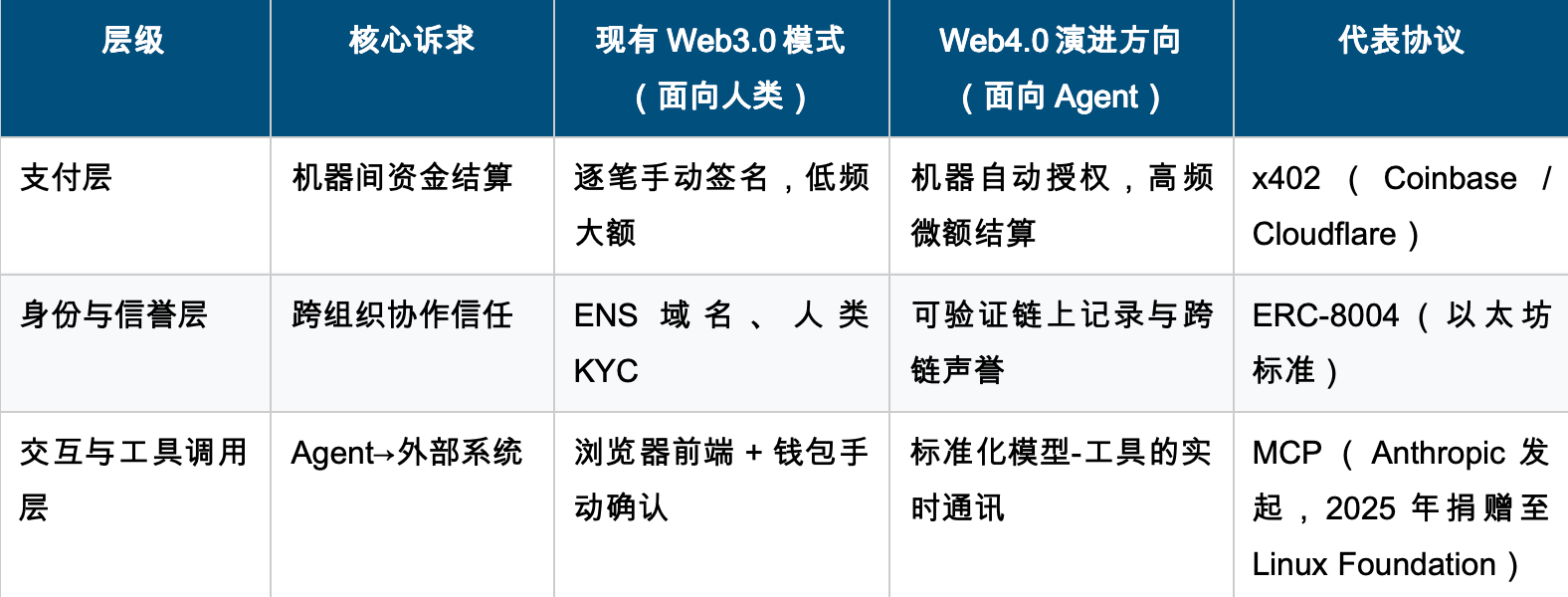 表 4:Web4.0 三层基础设施缺口与演进对比