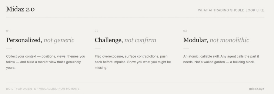 ● Midaz 则在应用层示范了"Built for Agents, Visualized for Humans"的 Skills 产品形态