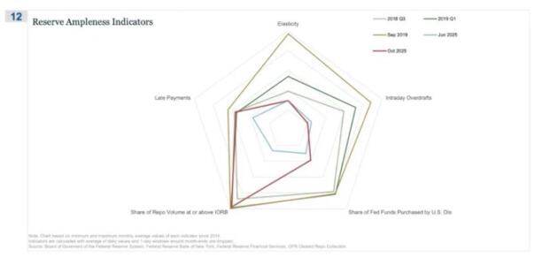 在这个雷达图上,「以等于或高于 IORB 利率进行的回购交易量占比」是最清晰的迹象,表明我们正悄然退出真正的充裕准备金制度。