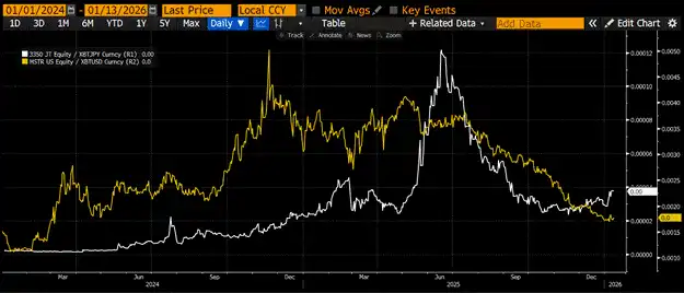 我是一个激进的投机者。尽管我的基金 Maelstrom 已接近满仓,但我仍想增加风险敞口,因为我极其看好美元流动性的增长。因此,我通过做多 MicroStrategy (MSTR) 和 Metaplanet (3350 JT) 来获得比特币的杠杆敞口,而无需交易复杂的期权或永续合约。