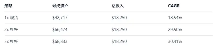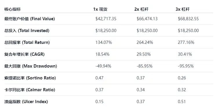 如果从风险、收益与可执行性综合来看——现货定投,反而是长期最优解;2x 是极限;3x 并不值得。