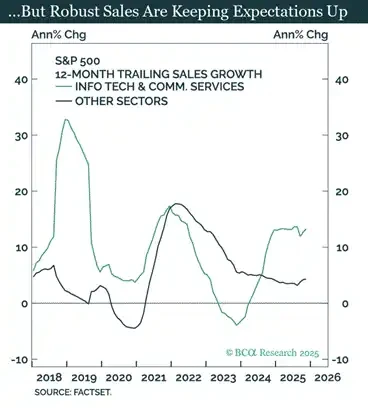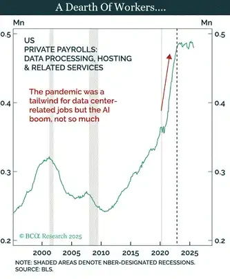 无论是否有泡沫,为了「赢得」AI 而增加支出正在驱动美国经济。特朗普承诺让经济运行得火热,他不能仅仅因为几年后这些支出的回报率可能低于资本成本就停下来。