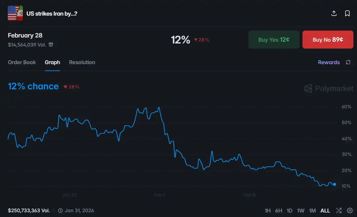 过去两个月,「美国是否将于某日前打击伊朗」一直是预测市场上的核心交易专题。在这一市场中,3 个账户通过押注「美国于 2 月 28 日前打击伊朗」合计获利超过 70 万美元。